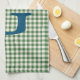 Cute Retro Vert En vichy Plaid Motif Monogram Serviette de cuisine