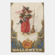 Cette mignonne petite sorcière adore son chou. Cette vintage impression d'Halloween représente une mignonne petite sorcière tenant son chat noir, des chats noirs bordant les bords et une lanterne de jack o'.