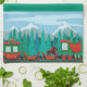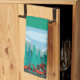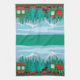 Joyeux train de Noël avec un petit Chien écossais à cheval le long de cette serviette de cuisine de vacances - l'arrière - plan de tiel.