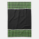 This kitchen towel is shown in a cute black and lime green buffalo plaid print design.