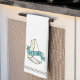 Cette amusante serviette de cuisine à chaudière à fromage présente la pièce sur les mots "laissez-la brie" sur une bannière bleue drapée sur un coin de fromage brie.