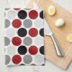 Motif rouge foncé, gris et noir moderne de cercles sur les serviettes de cuisine blanches. Une conception moderne dans des couleurs audacieuses