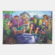 Art de la lecture estivale de Traci Van Wagoner présente un garçon et une fille assis dans un jardin urbain, les pieds dans un bain cool, en train de boire de la limonade et de lire des livres. Un chat et un chien s'allongent à leurs pieds sur le pont de bois. Parfait pour les amateurs de livres et de bibliophiles de tous âges.