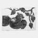 Une illustration noire et blanche d'un écureuil tenant un gland. A conçu pour ressembler à une copie de lino.