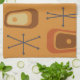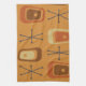 Ce motif d'art moderne du milieu du siècle présente des formes géométriques abstraites qui ressemblent à des téléviseurs à l'ancienne, ainsi que des starbursts Spoutnik, qui est un élément de base des designs des années 1950.