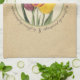 Une illustration classique de tulipes est la pièce centrale de cette serviette de cuisine Mojo américaine. Il est entouré du texte "les fleurs du printemps" contre un arrière - plan parchemin. Beauté classique pour n'importe quelle table. Disponible dans des modèles alternatifs avec des produits correspondants.