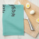 Une serviette de cuisine de couleur turquoise avec le message que la vaisselle doit être lavée - votre rappel de laver la vaisselle.
