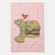 Petit cheeseburger adorable étreignant un groupe de pommes frites.