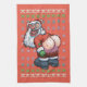Un père noël laid se pliant plus d'et exposant sa pleine lune pour la saison de Noël de Noël sur un arrière - plan laid de style de chandail. Le T-shirts, sue, des cartes et des cadeaux.