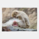 Cette photographie fascinante gèle un moment tendre partagé entre deux singes macaques. L'accent est mis sur un, sereinement niché sur un rocher patiné, les yeux fermés doucement, dégageant un air de tranquillité. A côté, un autre singe macaque tend à son compagnon, parfumant tendrement sa fourrure avec le plus grand soin et l'affection.