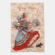 Ancien Noël Shopping serviette de cuisine avec arrière - plan crème, flocons d'or, et notre couple victorien rentrant du shopping avec leur petit chien.