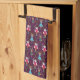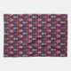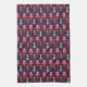 Serviette de cuisine de Noël mignonne et amusante avec l'illustration dessinée à la main du chat, du chien et de la souris comme personnages de ballet de noisette. L'arrière - plan est rouge.