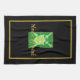 Drôle serviette de cuisine avec un design de crête de style médiéval pour les joueurs de pickleball, a croisé des épées sur le bouclier avec un terrain de pickleball, et "House of Dink" texte or et bordure sur l'arrière - plan noir