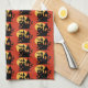 Serviette de cuisine Haunted House, ira parfait sur votre décor Halloween! Chauves-souris noires, sorcière volant sur balai, et un fantôme dans une maison hantée sur arrière - plan orange !