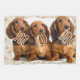 Trois chiens de teckel tenant la MAMAN de lettres.