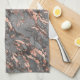 Serviette de cuisine en marbre noir, gris et rose or.