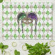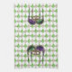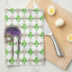 Serviette de cuisine de 16" x 24" avec une image, aux deux extrémités, d'une belle paillette mauve, verte et or masque une paillette (masque séquin) avec de longs rubans coordonnés sur un arrière - plan d'émeraudes en forme de losange et de citrines d'or disposés en motif Jacquard. Voir serviettes assorties, serviettes en papier, set de table en tissu, set de table en papier et dessous de verre. Voir toute la collection de serviettes de cuisine Mardi Gras dans le FOOD/BEV| Section Linens.
