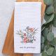 Festive et plage serviette de cuisine de Noël dispose d'une illustration d'ancre aquarelle ornée de fleurs de poinsettia, d'étoiles de mer rouge et de verdure de vacances colorée, avec "mers et salutations" ou votre choix de texte sous la lettre marine. Parfait pour les cadeaux de vacances ou l'hébergement.