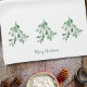 Cette serviette de cuisine Joyeuse Noël est décorée avec du feuillage et des baies de mistletoe aquarelle. Facile à personnaliser. Utilisez l'outil de conception pour modifier la taille, le style ou la couleur du texte. En créant notre oeuvre, vous ne trouverez pas cette image exacte d'autres créateurs. Aquarelle originale © Michele Davies.