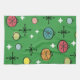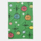Ce motif d'art inspiré de l'ère atomique des années 1950 a des ornements de Noël de style vintage et des flocons de neige éclatés de Spoutnik. Couleurs vertes et vives. Fêtes d'hiver de Noël fun !