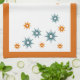 Éclairez votre cuisine avec cette serviette de cuisine design datant du milieu du siècle atomique. Ce design présente des étoiles dans les tons bleu turquoise, rouge-orange et jaune, encadrées d'orange vif.