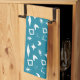 Serviette de cuisine bleu et blanc motif atomique moyen.