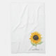 Minimal Rustic Sunflower Personalized Name Script kitchen towel