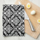 Linge De Cuisine Modèle Prima Damask blanc sur noir
