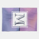 Serviette de cuisine avec arrière - plan moderne et design. Couleurs roses et violettes tourbillonnant autour créant un élégant effet dégradé. Un carré superposé avec votre lettre monogramme à l'intérieur.