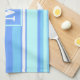 Linge De Cuisine Monogramme ciel bandes bleues