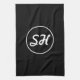 Linge De Cuisine Monogramme de style rétro-moderne cool | Noir et b