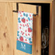 Linge De Cuisine Monogramme Motif de fraise bleu rouge Boho