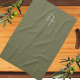 Une serviette de cuisine chic monogrammée avec un design tout-en-un dans l'olive teinte (#6A6A45). Conçu pour les personnes qui aiment travailler dans un espace à l'esthétique classique et à l'ombre harmonieuse de vert.Il est maintenant simple de customiser avec vos monogrammes spéciaux. Vous pouvez inclure un nom, un logo, etc. Conception par Alma Wad. _______________ Cette couleur est souvent liée au signe du zodiaque de la Libra. Lorsque vous choisissez un cadeau pour une personne née entre le 23 septembre et le 23 octobre, vous pouvez en tenir compte.
