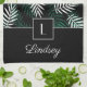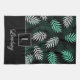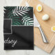 Serviette de thé de cuisine personnalisée avec un vert botanique et blanc tendance sur motif feuille noir et un imprimé de nom personnalisé et monogramme.
