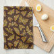 Cette serviette de cuisine est ornée de papillons rétro avec des fleurs sur leurs ailes aux couleurs populaires des années 1970, comme l'orange et le vert olive.