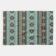 Le motif d'inspiration autochtone américaine/tribale présente des motifs géométriques. Palette : brun, orange, bleu ciel et blanc crème.