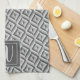 Gardez vos mains au sec avec ce Monogramme Motif Diamond Trois Tons. Il dispose d'un motif en diamant géométrique dans trois tons de gris avec une initiale en gris clair contre un carré gris foncé. Personnalisez-le avec votre initial. Donnez à votre cuisine un style supplémentaire.