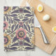 Cette serviette de cuisine présente des fleurs et des feuilles dans les tons rose et bleu sur un arrière - plan crème.