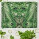Cette serviette de cuisine est équipée d'un motif vert complexe de ZoeSPEAK, fabriqué à partir d'une photo originale de frondes de palmiers sous la pluie. Les verts frais sont parsemés de gouttes de pluie qui accentuent les courbes des grands feuilles.