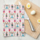 Serviette de cuisine de Noël mignonne et amusante avec l'illustration dessinée à la main du chat, du chien et de la souris comme personnages de ballet de noisette. L'arrière - plan est rose.