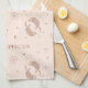 A chic celestial pattern kitchen towel celebrating the Pisces zodiac sign, featuring a glyph resembling two fish tied together by a cord, swimming in opposite directions. Set against a burgundy background with minimalist brown linework, Astrological symbols, including the glyph for Pisces and a trident, this seamless design embodies harmony, beauty, and cosmic energy.