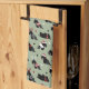 Chiens écossais mignons habillés de tenues de vacances festives, chapeaux de Père Noël et chandails de Jacquard avec des ornements de Noël éparpillés sur un arrière - plan vert.