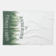 Belles serviettes de cuisine à thème rustique avec votre nom de famille personnalisé et cabine, lodge ou autre texte souhaité et son emplacement. Ce design personnalisé présente des oeuvres d'art d'une silhouette de forêt de pins dans les tons de forêt et de vert chasseur. N'hésitez pas à visiter mon magasin de créateurs pour voir plus d'objets et de modèles comme celui-ci. Merci .