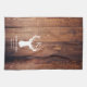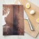 Nom de famille Monogram Lake Rustic Deer Antler Serviette de cuisine en bois. Personnalisez ces élégantes serviettes élégantes avec votre nom de famille, année établie, et monogramme moderne. Le design personnalisable comprend du bois de grange en difficulté. Parfait pour la maison de lac, maison de vacances, ferme, camping-car, chasseur ou campement de campagne, ou gîte. Commandes spéciales disponibles sur truullc@gmail.com