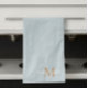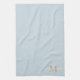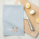 Serviette de cuisine moderne, élégante et tendance, présente ici en bleu poussiéreux avec monogramme bronzé et typographie de nom blanc. Les couleurs peuvent être customisées à votre choix