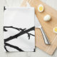Cette serviette de cuisine contemporaine d'art moderne dispose d'un motif abstrait moderne noir et blanc d'une silhouette de Junco aux yeux foncés (Junco hyemalis) perché sur une branche nue haut dans un arbre. Cet oiseau est en fait une sorte de petit moineau gris et blanc.