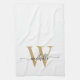 Linge De Cuisine Or Blanc Moderne Écriture Personnalisée Monogramme