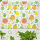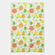 Une serviette de cuisine lumineuse et joyeuse décorée d'un motif aux agrumes recouvert d'oranges, de citrons, de citrons et de citrons, et plus peinte à la main avec aquarelle. Joli cadeau ou quelque chose de nouveau pour votre cuisine!