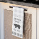Customisez votre cuisine avec cette mignonne serviette personnalisée avec votre nom de famille ou nom de maison et année établie en lettres grises au charbon de bois, accentuée avec une illustration d'ours sur un arrière - plan tonal plaid.