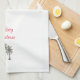 Serviette de cuisine de Noël tropicale, avec des palmiers dessinant illustration et typographie de script. Avec le lettrage personnalisable, vous ajoutez vos propres informations. Un accessoire festif pour vos accessoires de cuisine de vacances.